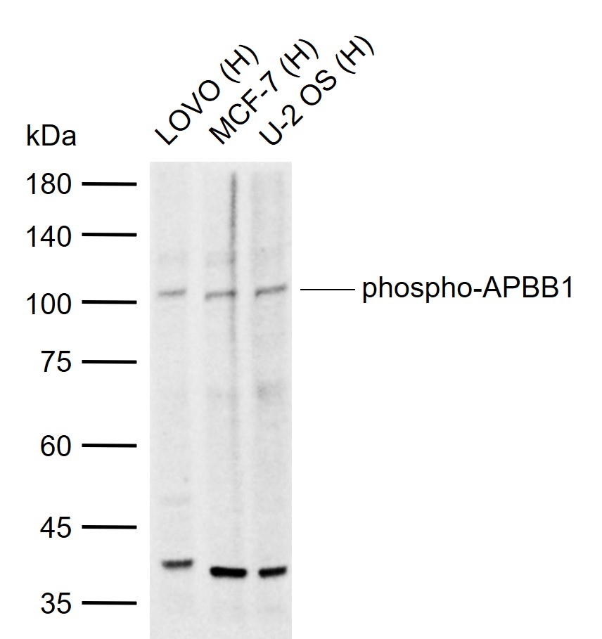 Primary: Anti-phospho-APBB1 (Ser175) (bs-5165R) at 1/1000 dilution