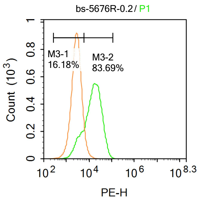 Primary Antibody (green line): Rabbit Anti-phospho-ROCK2(Tyr256) antibody (bs-5676R)