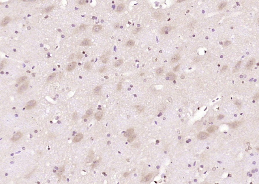 Paraformaldehyde-fixed, paraffin embedded (rat brain); Antigen retrieval by boiling in sodium citrate buffer (pH6.0) for 15min; Block endogenous peroxidase by 3% hydrogen peroxide for 20 minutes; Blocking buffer (normal goat serum) at 37°C for 30min; Antibody incubation with (Phospho-RASGRF1 (Ser929)) Polyclonal Antibody, Unconjugated (bs-5683R) at 1:200 overnight at 4°C, followed by operating according to SP Kit(Rabbit) (sp-0023) instructionsand DAB staining.