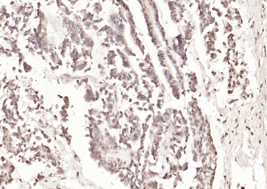 Paraformaldehyde-fixed, paraffin embedded (human gastric carcinoma); Antigen retrieval by boiling in sodium citrate buffer (pH6.0) for 15min; Block endogenous peroxidase by 3% hydrogen peroxide for 20 minutes; Blocking buffer (normal goat serum) at 37°C for 30min; Antibody incubation with (ST5) Polyclonal Antibody, Unconjugated (bs-6112R) at 1:200 overnight at 4°C, followed by operating according to SP Kit(Rabbit) (sp-0023) instructionsand DAB staining.
