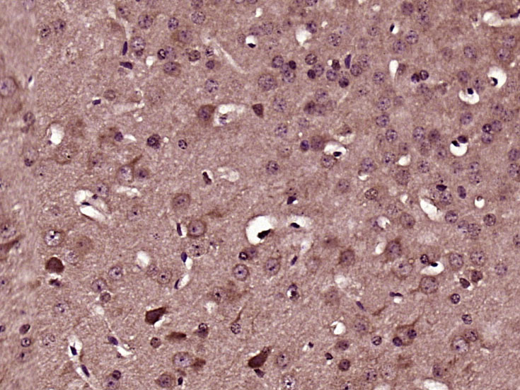 Paraformaldehyde-fixed, paraffin embedded (Mouse brain); Antigen retrieval by boiling in sodium citrate buffer (pH6.0) for 15min; Block endogenous peroxidase by 3% hydrogen peroxide for 20 minutes; Blocking buffer (normal goat serum) at 37°C for 30min; Antibody incubation with (ADAM23) Polyclonal Antibody, Unconjugated (bs-5853R) at 1:500 overnight at 4°C, followed by a conjugated secondary (sp-0023) for 20 minutes and DAB staining.