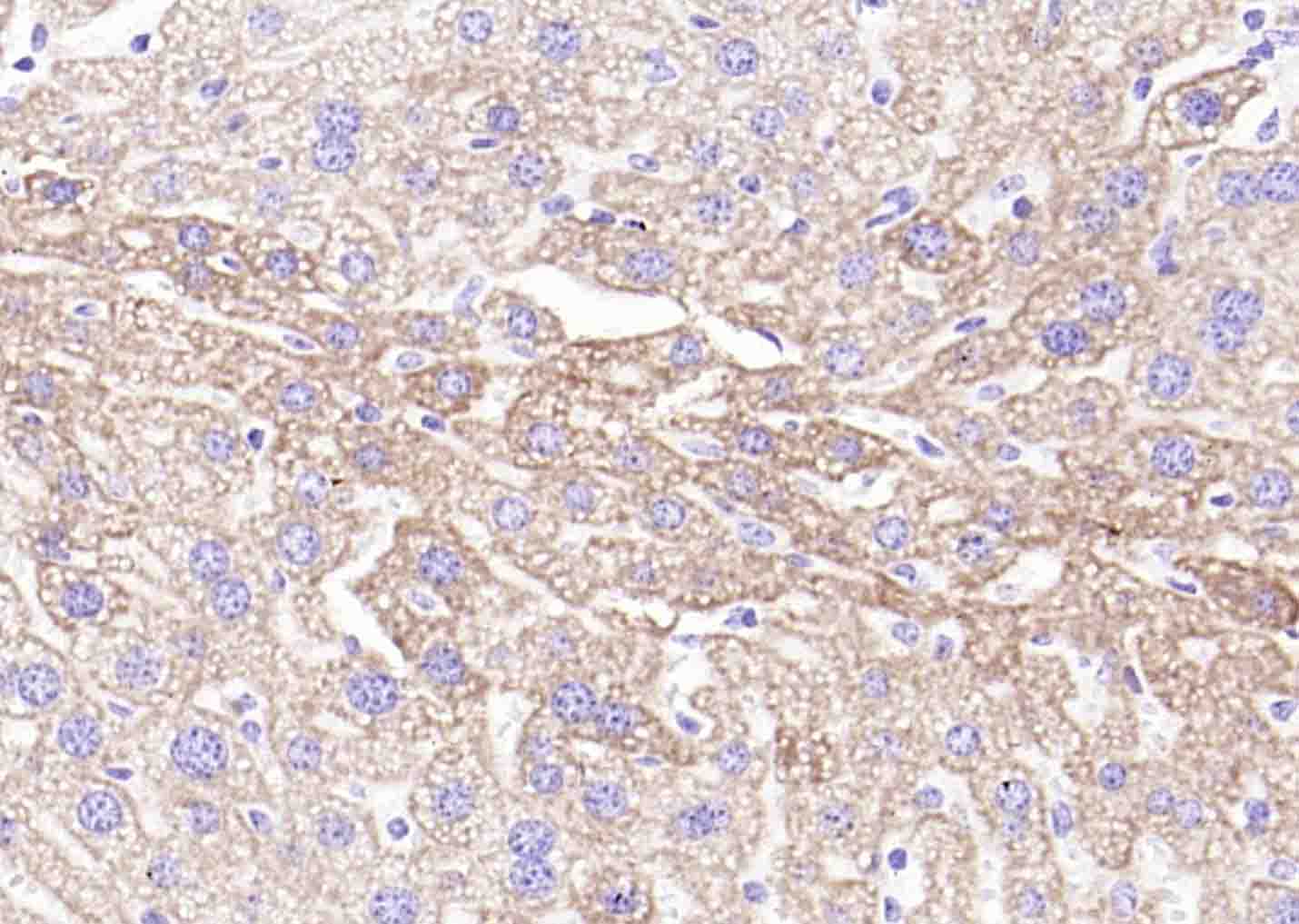 Paraformaldehyde-fixed, paraffin embedded (rat liver); Antigen retrieval by boiling in sodium citrate buffer (pH6.0) for 15min; Block endogenous peroxidase by 3% hydrogen peroxide for 20 minutes; Blocking buffer (normal goat serum) at 37°C for 30min; Antibody incubation with (PRDX2) Polyclonal Antibody, Unconjugated (bs-8300R) at 1:200 overnight at 4°C, followed by operating according to SP Kit(Rabbit) (sp-0023) instructionsand DAB staining.