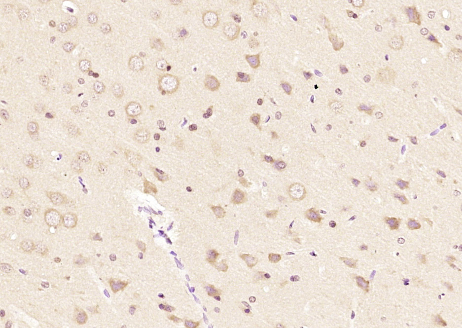 Paraformaldehyde-fixed, paraffin embedded (rat brain); Antigen retrieval by boiling in sodium citrate buffer (pH6.0) for 15min; Block endogenous peroxidase by 3% hydrogen peroxide for 20 minutes; Blocking buffer (normal goat serum) at 37°C for 30min; Antibody incubation with (Peroxiredoxin 2) Polyclonal Antibody, Unconjugated (bs-8300R) at 1:200 overnight at 4°C, followed by operating according to SP Kit(Rabbit) (sp-0023) instructionsand DAB staining.