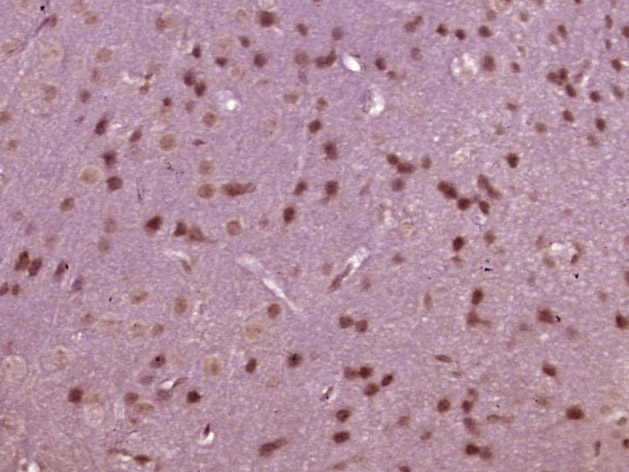 Paraformaldehyde-fixed, paraffin embedded (mouse brain tissue); Antigen retrieval by boiling in sodium citrate buffer (pH6.0) for 15min; Block endogenous peroxidase by 3% hydrogen peroxide for 20 minutes; Blocking buffer (normal goat serum) at 37°C for 30min; Antibody incubation with (SOX8) Polyclonal Antibody, Unconjugated (bs-11600R) at 1:400 overnight at 4°C, followed by operating according to SP Kit(Rabbit) (sp-0023) instructionsand DAB staining.