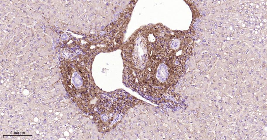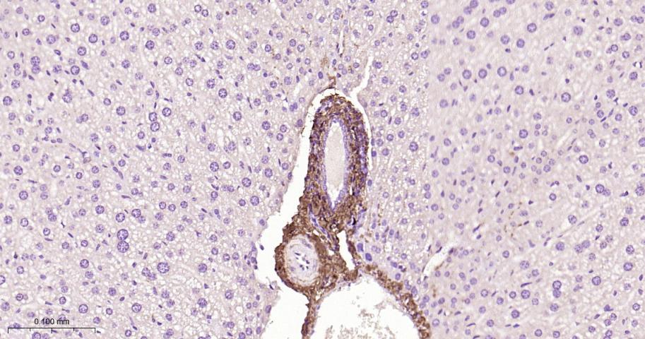 Paraformaldehyde-fixed, paraffin embedded Mouse Liver; Antigen retrieval by boiling in sodium citrate buffer (pH6.0) for 15 min; The section was incubated with Collagen I Polyclonal Antibody, Unconjugated (bs-10423R) at 1:800 overnight at 4°C, followed by conjugation to the bs-0295G-HRP and DAB (C-0010) staining.