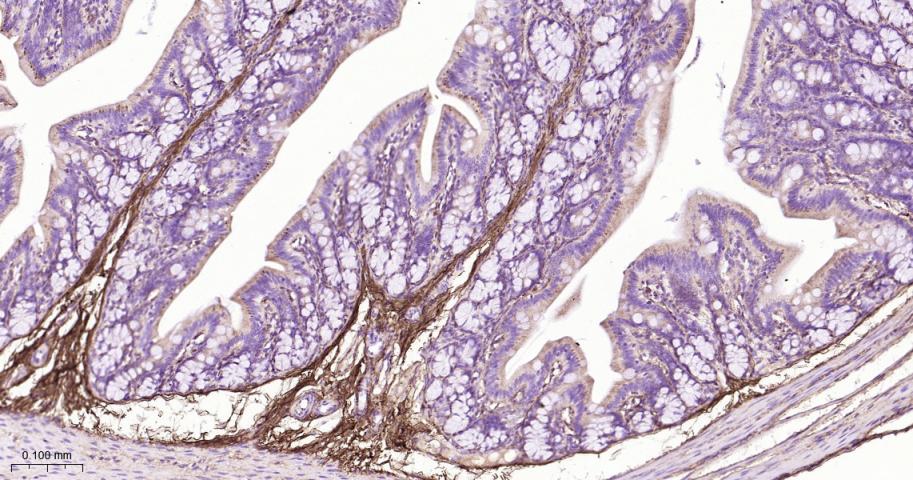 Paraformaldehyde-fixed, paraffin embedded Rat Colon; Antigen retrieval by boiling in sodium citrate buffer (pH6.0) for 15 min; The section was incubated with Collagen I Polyclonal Antibody, Unconjugated (bs-10423R) at 1:800 overnight at 4°C, followed by conjugation to the bs-0295G-HRP and DAB (C-0010) staining.
