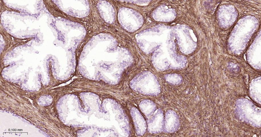 Paraformaldehyde-fixed, paraffin embedded Human Prostate; Antigen retrieval by boiling in sodium citrate buffer (pH6.0) for 15 min; The section was incubated with Collagen I Polyclonal Antibody, Unconjugated (bs-10423R) at 1:800 overnight at 4°C, followed by conjugation to the bs-0295G-HRP and DAB (C-0010) staining.