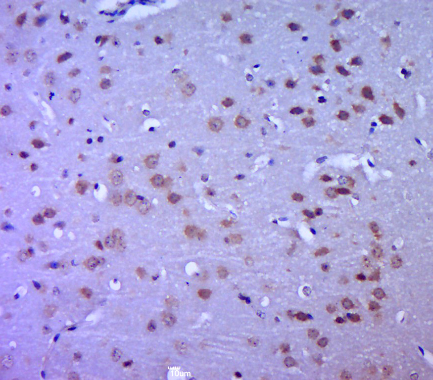Paraformaldehyde-fixed, paraffin embedded (mouse brain tissue); Antigen retrieval by boiling in sodium citrate buffer (pH6.0) for 15min; Block endogenous peroxidase by 3% hydrogen peroxide for 20 minutes; Blocking buffer (normal goat serum) at 37°C for 30min; Antibody incubation with (MTX1) Polyclonal Antibody, Unconjugated (bs-17897R) at 1:400 overnight at 4°C, followed by a conjugated secondary (sp-0023) for 20 minutes and DAB staining.