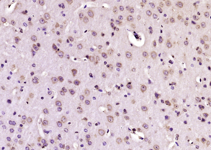 Paraformaldehyde-fixed, paraffin embedded (mouse brain); Antigen retrieval by boiling in sodium citrate buffer (pH6.0) for 15min; Block endogenous peroxidase by 3% hydrogen peroxide for 20 minutes; Blocking buffer (normal goat serum) at 37°C for 30min; Antibody incubation with (PAMCI/RASF9) Polyclonal Antibody, Unconjugated (bs-21011R) at 1:200 overnight at 4°C, followed by operating according to SP Kit(Rabbit) (sp-0023) instructionsand DAB staining.
