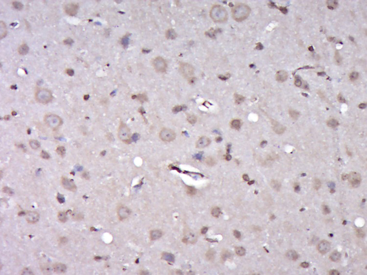 Paraformaldehyde-fixed, paraffin embedded (Rat brain); Antigen retrieval by boiling in sodium citrate buffer (pH6.0) for 15min; Block endogenous peroxidase by 3% hydrogen peroxide for 20 minutes; Blocking buffer (normal goat serum) at 37°C for 30min; Antibody incubation with (p-ZIP Kinase (Thr265)) Polyclonal Antibody, Unconjugated (bs-8664R) at 1:400 overnight at 4°C, followed by operating according to SP Kit(Rabbit) (sp-0023) instructions and DAB staining.
