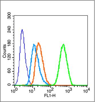 Primary Antibody (green line): Rabbit Anti-Caspase-1 p20 antibody (bs-10442R)