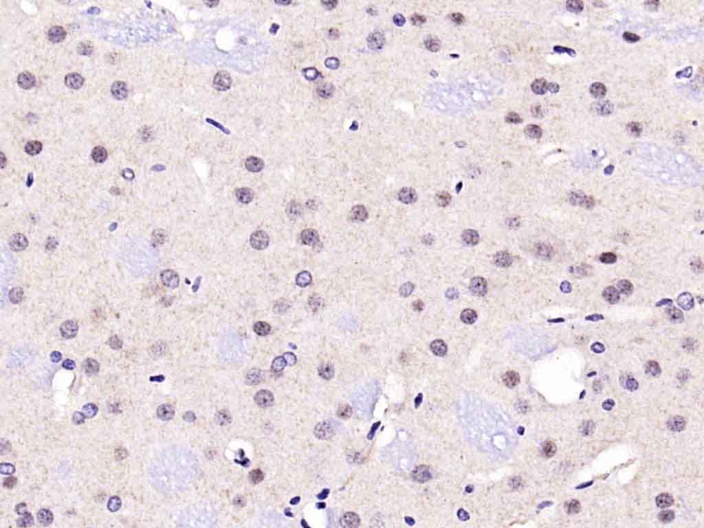Paraformaldehyde-fixed, paraffin embedded (rat brain); Antigen retrieval by boiling in sodium citrate buffer (pH6.0) for 15min; Block endogenous peroxidase by 3% hydrogen peroxide for 20 minutes; Blocking buffer (normal goat serum) at 37°C for 30min; Antibody incubation with (PARP1) Polyclonal Antibody, Unconjugated (bs-20763R) at 1:200 overnight at 4°C, followed by operating according to SP Kit(Rabbit) (sp-0023) instructionsand DAB staining.
