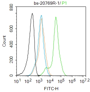 Primary Antibody (green line): Rabbit Anti-Retinoid X receptor alpha antibody (bs-20769R)