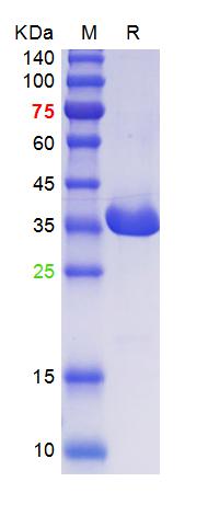 The purity of the protein is greater than 90% as determined by reducing SDS-PAGE.