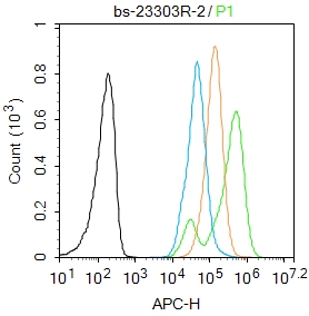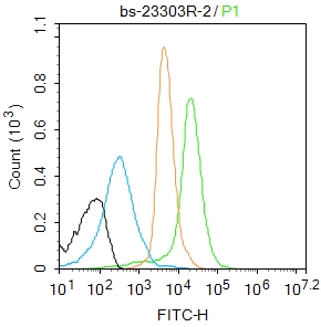 Primary Antibody (green line): Rabbit Anti-phospho-NFKB p65 (Ser311) antibody (bs-23303R)