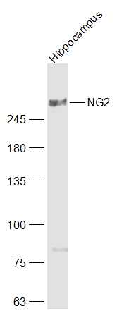 Paraformaldehyde-fixed, paraffin embedded (Mouse brain); Antigen retrieval by boiling in sodium citrate buffer (pH6.0) for 15min; Block endogenous peroxidase by 3% hydrogen peroxide for 20 minutes; Blocking buffer (normal goat serum) at 37°C for 30min; Antibody incubation with (NG2) Polyclonal Antibody, Unconjugated (bs-23788R) at 1:400 overnight at 4°C, followed by operating according to SP Kit(Rabbit) (sp-0023) instructionsand DAB staining.