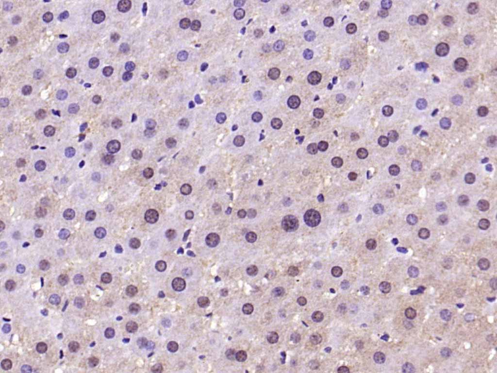 Paraformaldehyde-fixed, paraffin embedded (rat liver); Antigen retrieval by boiling in sodium citrate buffer (pH6.0) for 15min; Block endogenous peroxidase by 3% hydrogen peroxide for 20 minutes; Blocking buffer (normal goat serum) at 37°C for 30min; Antibody incubation with (TBX3) Polyclonal Antibody, Unconjugated (bs-22586R) at 1:200 overnight at 4°C, followed by operating according to SP Kit(Rabbit) (sp-0023) instructionsand DAB staining.