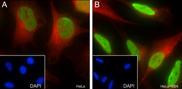 Cell line: (A) HeLa, (B) HeLa+SBA (5mM, 24hr)