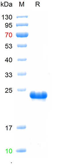 The purity of the protein is greater than 90% as determined by reducing SDS-PAGE.
