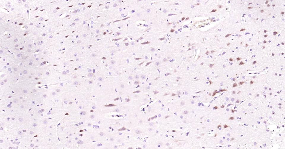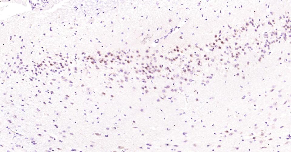 Paraformaldehyde-fixed, paraffin embedded Rat Cerebrum; Antigen retrieval by boiling in sodium citrate buffer (pH6.0) for 15 min; Antibody incubation with JNK1 Monoclonal Antibody, Unconjugated(bsm-61084R) at 1:200 overnight at 4°C, followed by conjugation to the bs-0295G-HRP and DAB (C-0010) staining.