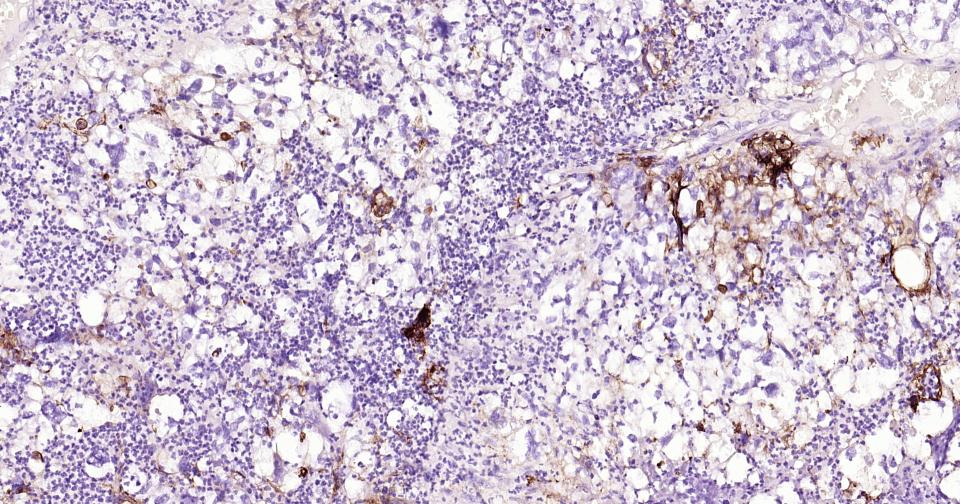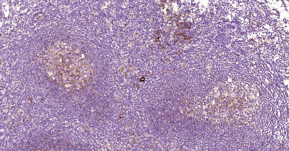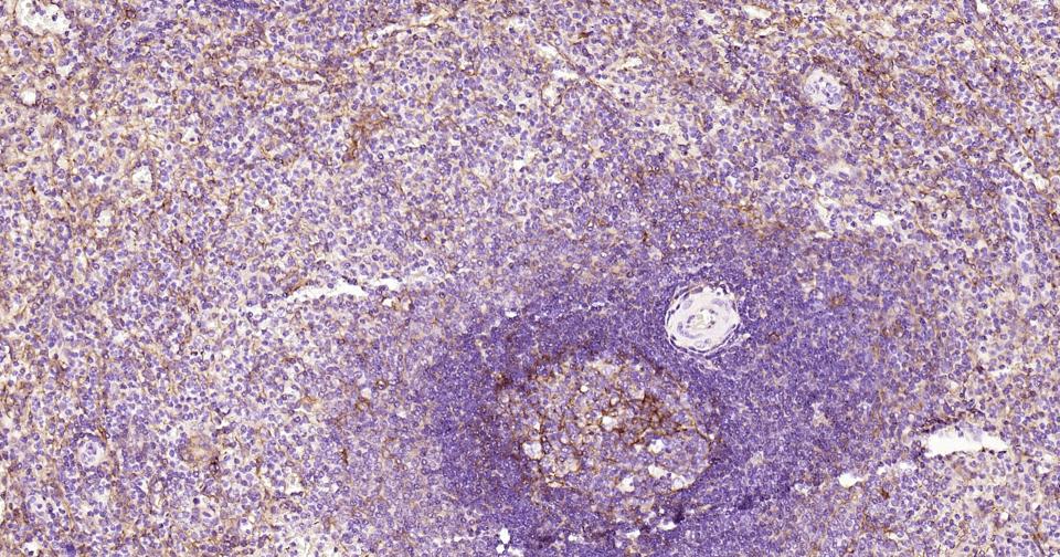 Paraformaldehyde-fixed, paraffin embedded Human Spleen; Antigen retrieval by boiling in sodium citrate buffer (pH6.0) for 15 min; Antibody incubation with ICAM1 Monoclonal Antibody, Unconjugated(bsm-52466R) at 1:200 overnight at 4°C, followed by conjugation to the SP Kit(Rabbit, SP-0023) and DAB (C-0010) staining.
