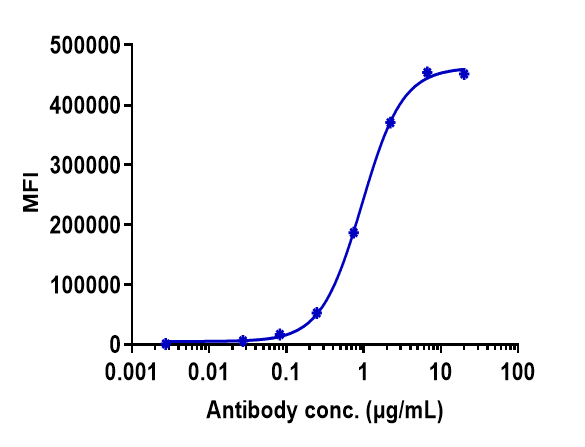 Human B7H5 CHO-K cells were stained with Anti-B7-H5 / VISTA Reference Antibody (onvatilimab) and negative control protein respectively, washed and then followed by PE and analyzed with FACS, EC50=0.9471 ug/mL.