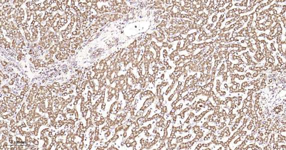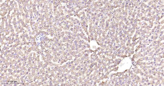 Immunohistochemical analysis of paraffin embedded mouse liver tissue slide using IHC0460 (ATPB IHC Kit).