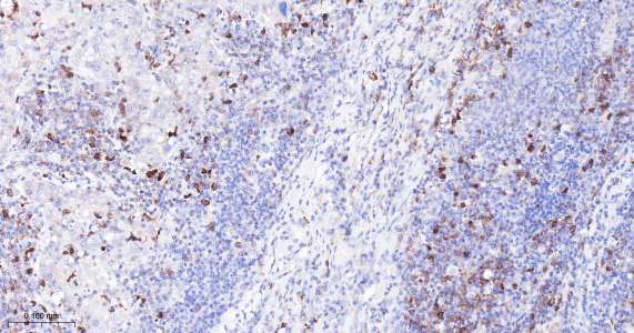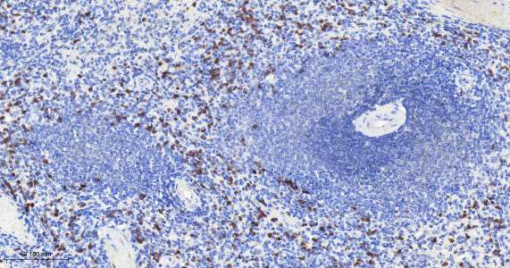 Immunohistochemical analysis of paraffin embedded human spleen tissue slide using IHC0465H (Human cIAP1 IHC Kit).