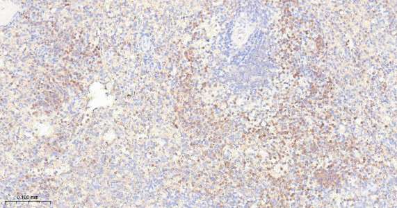 Immunohistochemical analysis of paraffin embedded human spleen tissue slide using IHC0470H (Human API2/BIRC3 IHC Kit).