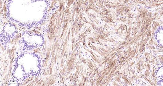 Immunohistochemical analysis of paraffin embedded human prostate cancer tissue slide using IHC0473H (Human Vinculin IHC Kit).