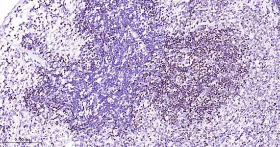Immunohistochemical analysis of paraffin embedded rat spleen tissue slide using IHC0490R (Rat MEF2C IHC Kit).