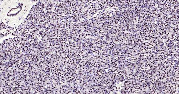 Immunohistochemical analysis of paraffin embedded human pancreas tissue slide using IHC0492H (Human METTL3 IHC Kit).