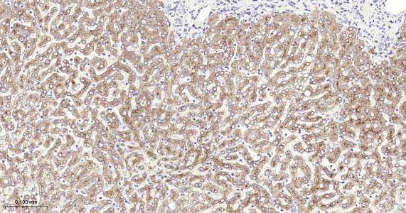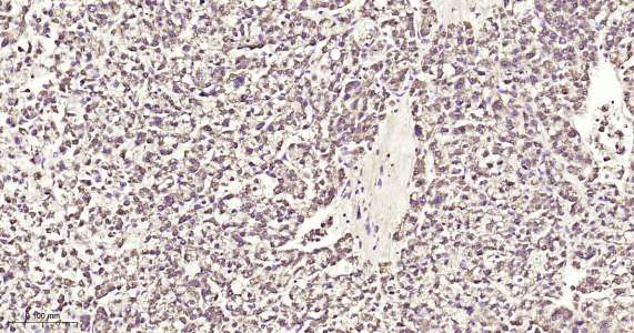 Immunohistochemical analysis of paraffin embedded human hepatocellular carcinoma tissue slide using IHC0493H (Human TFR2 IHC Kit).