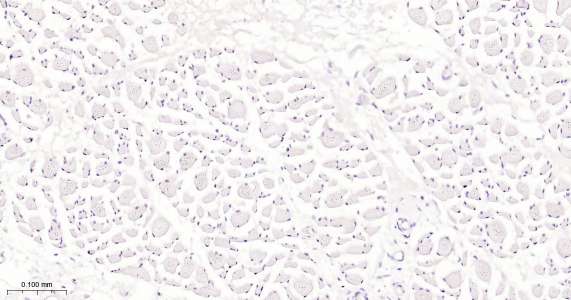 Immunohistochemical analysis of paraffin embedded human skeletal muscle tissue slide using IHC0497H (Human CBS IHC Kit).