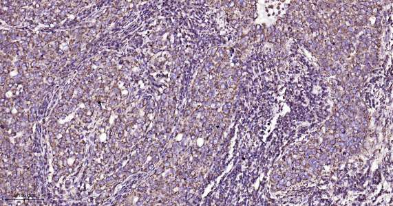 Immunohistochemical analysis of paraffin embedded human breast cancer tissue slide using IHC0498H (Human VDAC1 IHC Kit).