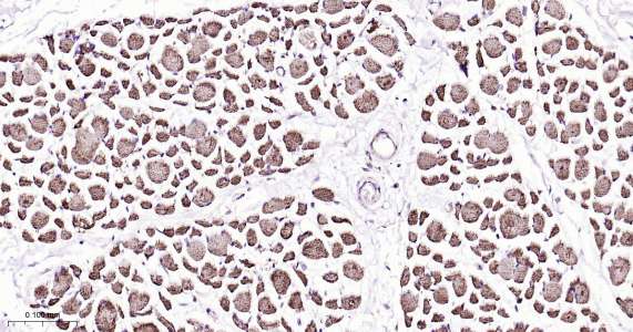 Immunohistochemical analysis of paraffin embedded human skeletal muscle tissue slide using IHC0498H (Human VDAC1 IHC Kit).
