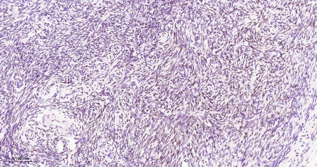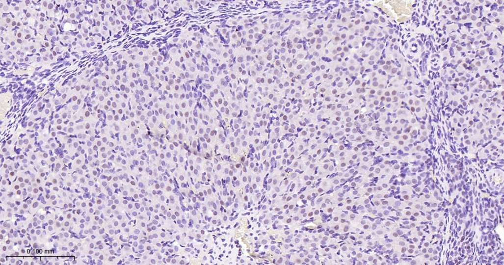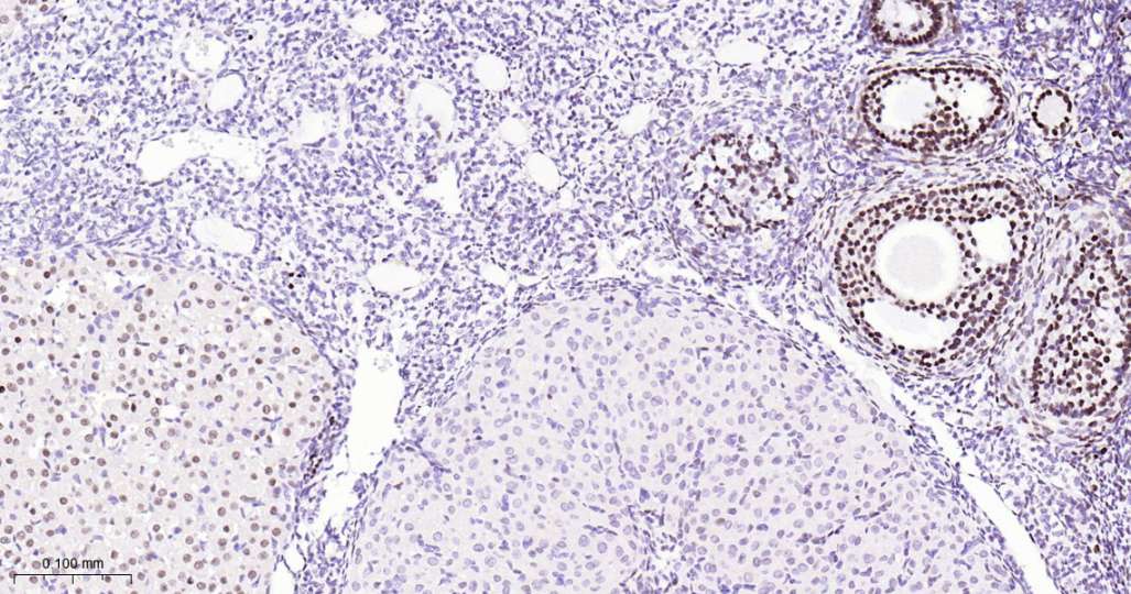 Immunohistochemical analysis of paraffin embedded Human ovary tissue slide using IHC0505 (FOXL2 Kit).