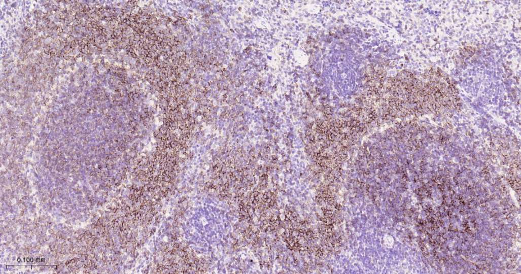 Immunohistochemical analysis of paraffin embedded Rat spleen tissue slide using IHC0527R (Rat LY75 Kit).