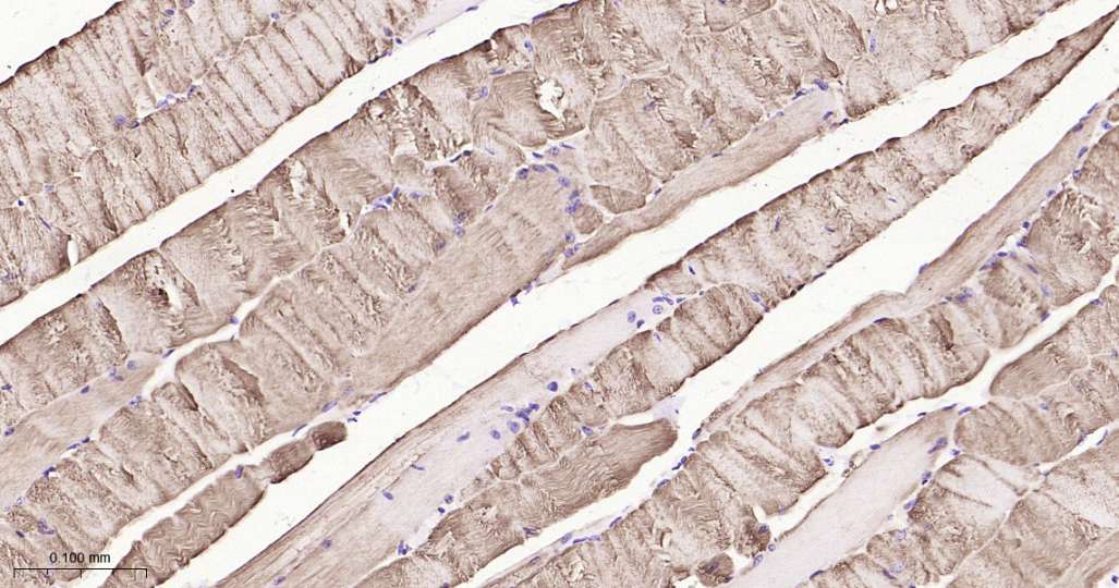 Immunohistochemical analysis of paraffin embedded Mouse skeletal muscle tissue slide using IHC0536 (PLIN2 Kit).