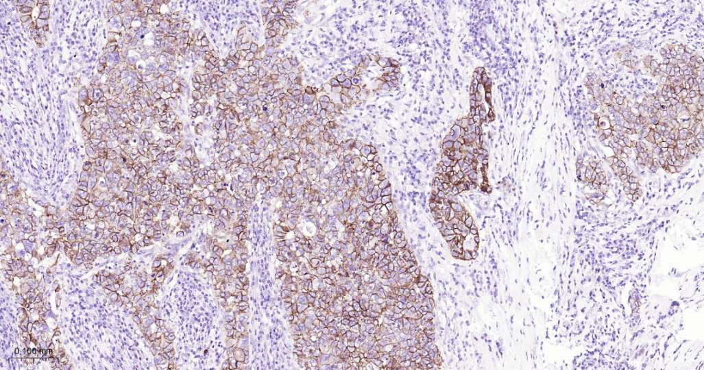 Immunohistochemical analysis of paraffin embedded Human breast cancer tissue slide using IHC0567 (delta Catenin Kit).