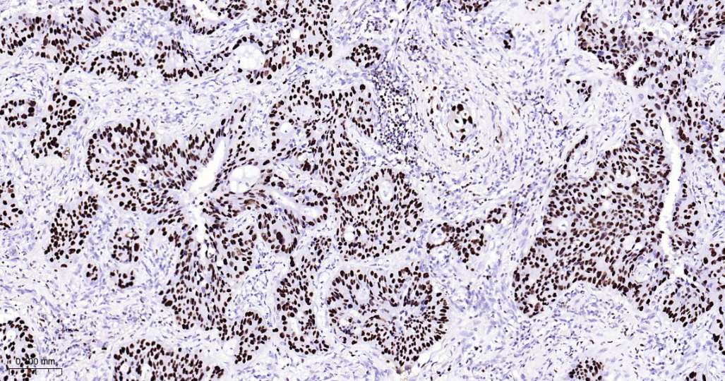 Immunohistochemical analysis of paraffin embedded Human lung cancer tissue slide using IHC0574H (Human MCM2 Kit).
