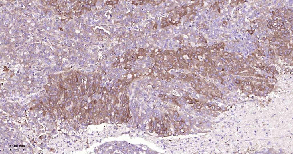 Immunohistochemical analysis of paraffin embedded Human kidney tissue slide using IHC0580H (Human LRP/MVP Kit).