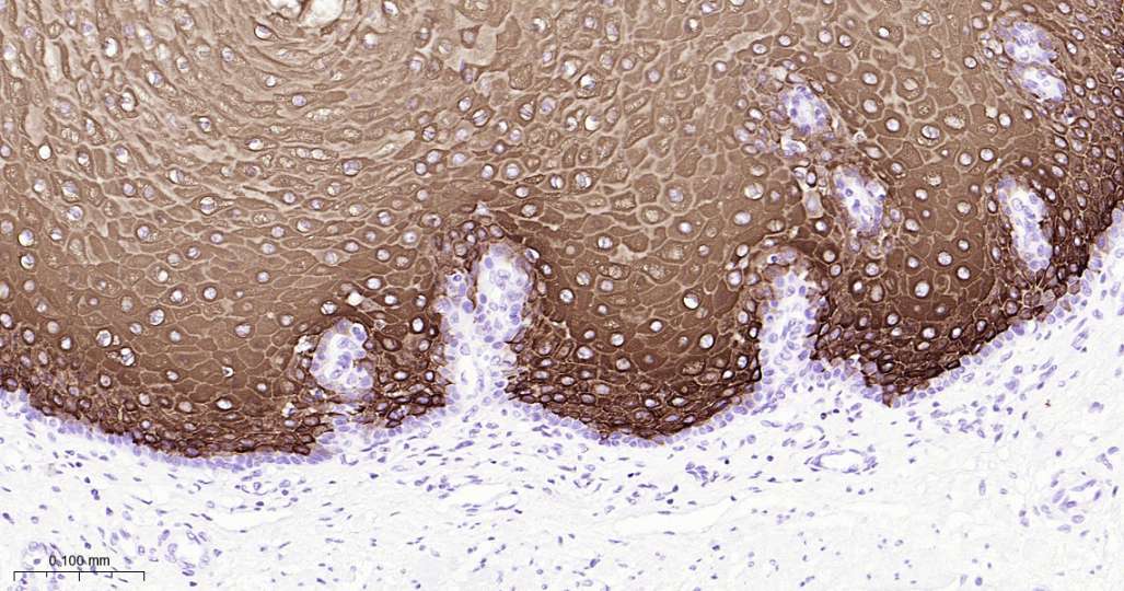Immunohistochemical analysis of paraffin embedded Human esophagus tissue slide using IHC0588H (Human Cytokeratin 6 Kit).