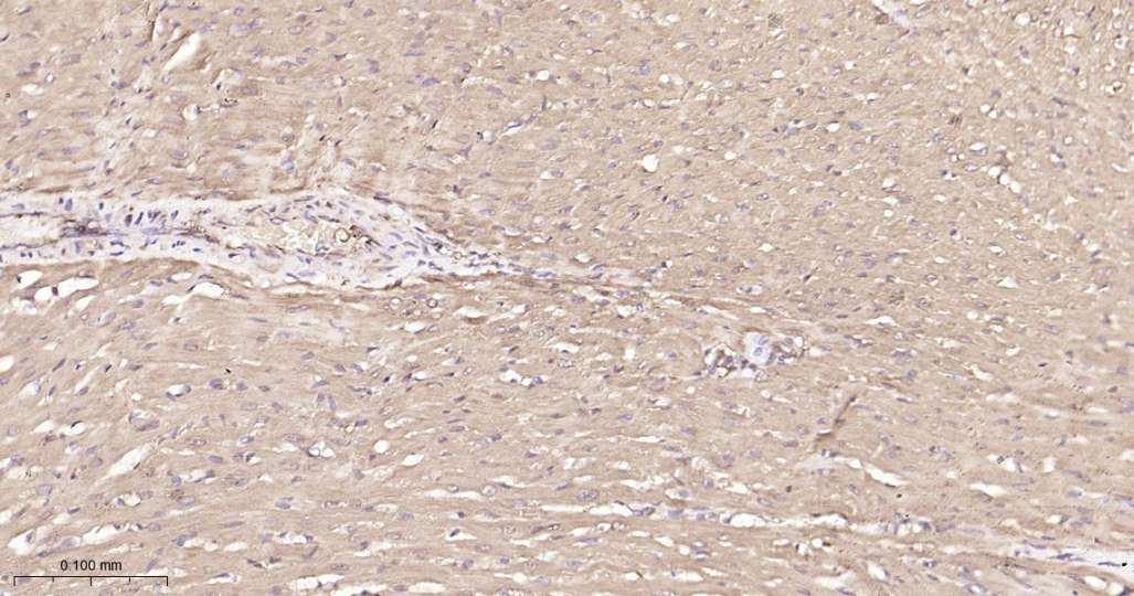 Immunohistochemical analysis of paraffin embedded Rat heart tissue slide using IHC0591R (Rat HSP90 beta Kit).