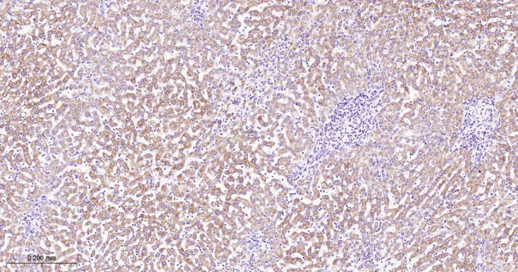 Immunohistochemical analysis of paraffin embedded Human liver tissue slide using IHC0608H (Human STAT3 Kit).
