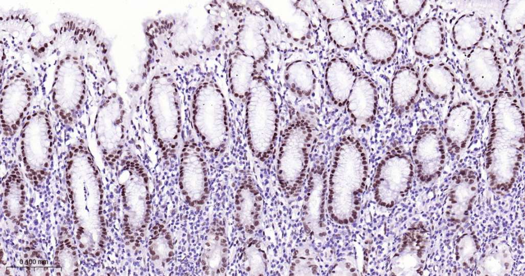 Immunohistochemical analysis of paraffin embedded Human stomach tissue slide using IHC0616H (Human CTBP2 Kit).