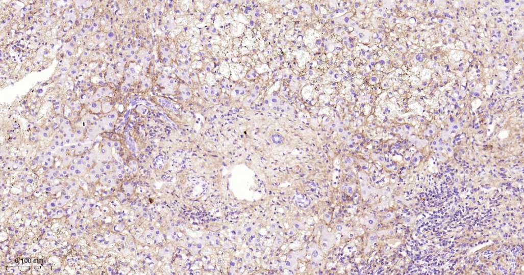 Immunohistochemical analysis of paraffin embedded Human colon cancer tissue slide using IHC0618H (Human TGFBI Kit).