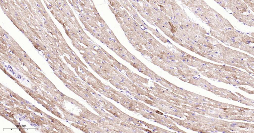 Immunohistochemical analysis of paraffin embedded Mouse heart tissue slide using IHC0624M (Mouse ACADM Kit).
