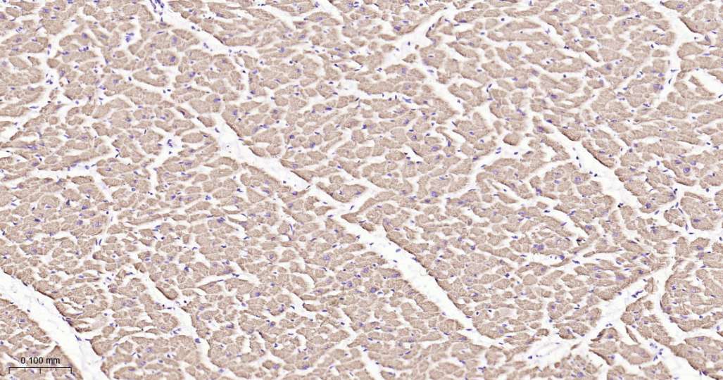 Immunohistochemical analysis of paraffin embedded Human heart tissue slide using IHC0625H (Human ACADM Kit).