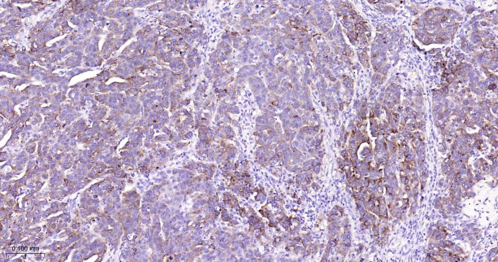 Immunohistochemical analysis of paraffin embedded Human endometrial carcinoma tissue slide using IHC0627H (Human HE4 Kit).